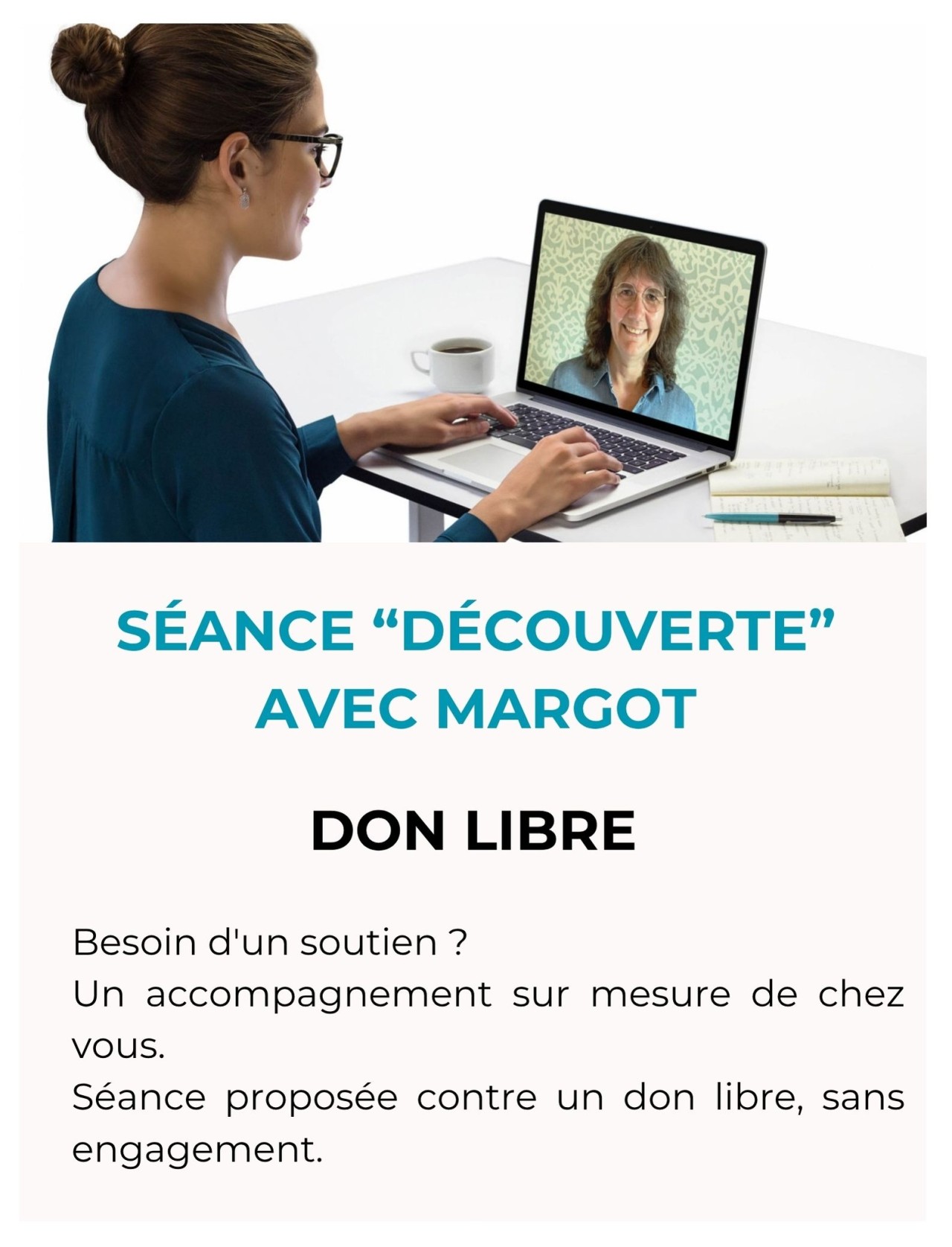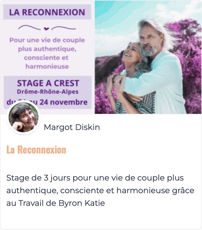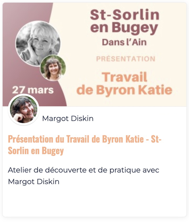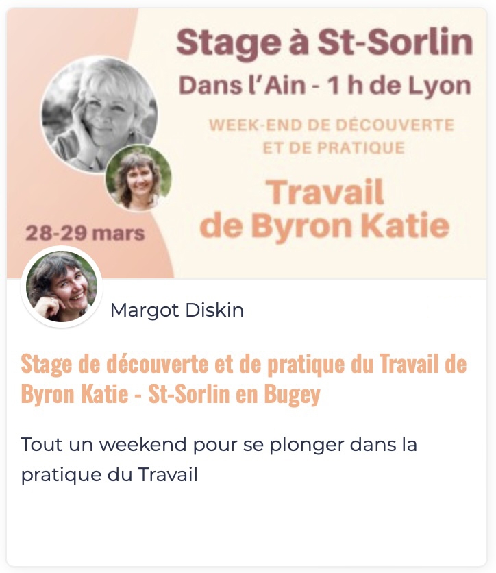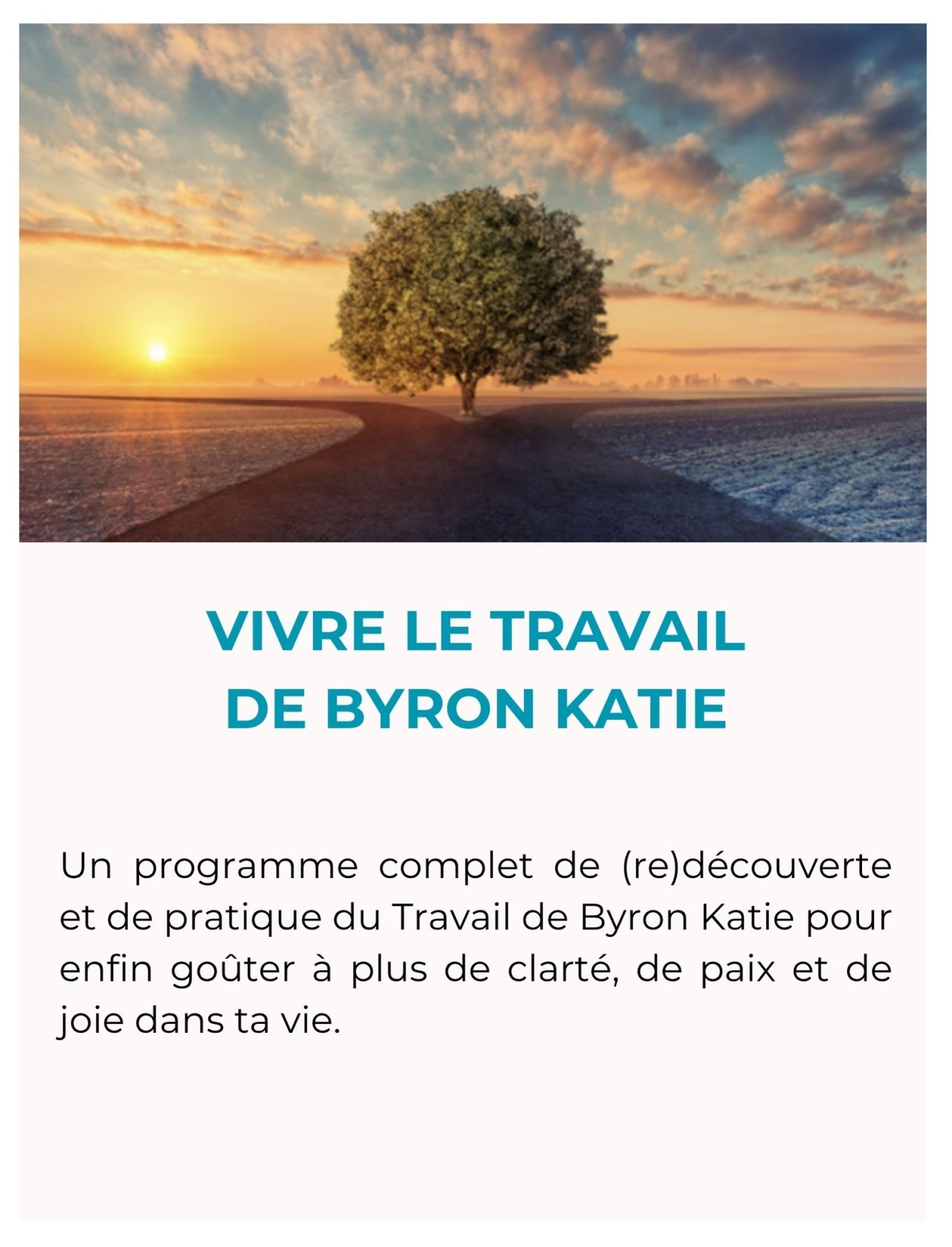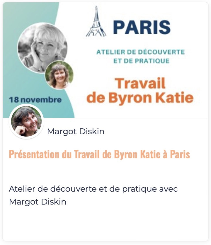 Le Travail de Byron Katie toujours à portée de main au travers de notre programme « Vivre le Travail de Byron Katie » ainsi que des séances d'accompagnement avec Margot.